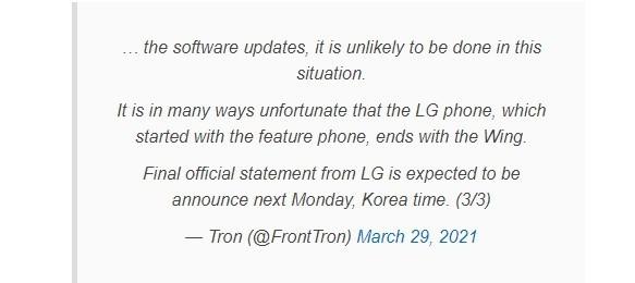 據報道,LG不是完全退出手機市場,并且極有可能承諾繼續(xù)支持現有的手機。但是,爆料者懷疑LG是否能夠真正兌現這一承諾,這意味著即使在那些仍處于支持范圍內的手機,LG也將無法進行更新。