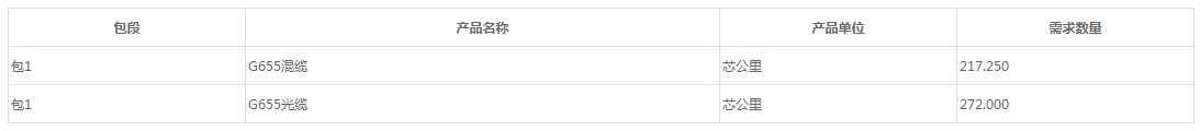 說(shuō)明:本次采購(gòu)的光纖數(shù)量上限為25,000芯長(zhǎng)公里,下表中的“需求數(shù)量”為預(yù)計(jì)成纜數(shù)量,實(shí)際以執(zhí)行為準(zhǔn)。