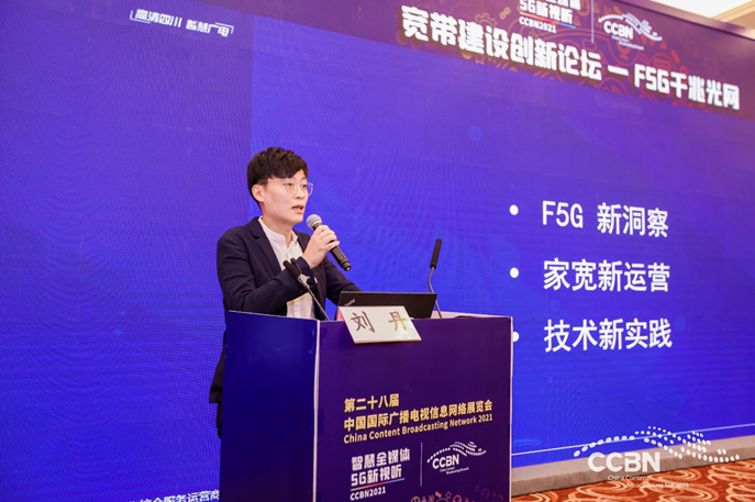 中國廣電四川網(wǎng)絡(luò)股份有限公司技術(shù)部副總經(jīng)理劉丹做了《F5G新時代,品質(zhì)家寬贏未來》的主題演講,分享了四川廣電品質(zhì)家寬建設(shè)的思考。劉丹將F5G全光網(wǎng)絡(luò)的價值點總結(jié)為三個方面:一是超強的帶寬,二是全光聯(lián)接,三是極致的體驗,雙千兆入戶的背景下,廣電帶寬往F5G全光網(wǎng)絡(luò)發(fā)展已經(jīng)是無需爭議的一個方向。除了廣電的帶寬運營,劉丹認為廣電運營的另一個價值點是對內(nèi)容的核心運營。他結(jié)合四川廣電的具體實踐案例提出解決方案:以高清視頻作為基礎(chǔ),游戲作為亮點,智能家庭是未來,通過智能管道+自有核心平臺+內(nèi)容,充分挖掘?qū)拵в脩舻膬r值。