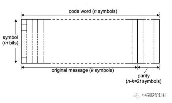 以RS(544,514,15,10)表示方式舉例,每個(gè)符號(hào)Symbol數(shù)據(jù)位寬位10位(m=10bits),原始數(shù)據(jù)為514個(gè)符號(hào)(k=514),校驗(yàn)數(shù)據(jù)為30個(gè)Symbol(t=15),最終編碼完成后符號(hào)總數(shù)為544個(gè)Symbol(n=544)。