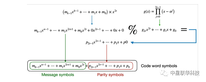 IEEE 802.3中定義了編碼的算法,編碼的數(shù)學(xué)過程并不復(fù)雜。將原始64B/66B的codeword編碼的數(shù)據(jù)后面補(bǔ)30個(gè)0,除以生成多項(xiàng)式 g(x)取余下的多項(xiàng)式為校驗(yàn)多項(xiàng)式p(x),將校驗(yàn)多項(xiàng)式加到剛才補(bǔ)過0的編碼數(shù)據(jù)多項(xiàng)式中,就是最終生成的編碼。