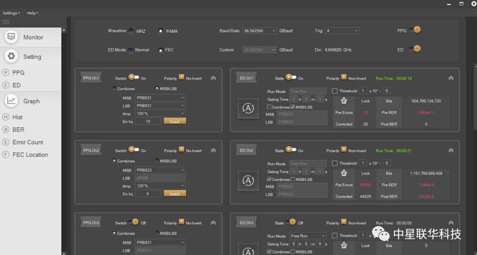 具備FEC 符號(hào)錯(cuò)誤糾正功能,具有誤碼符號(hào)分布圖,支持FEC-KR4和FEC-KP4