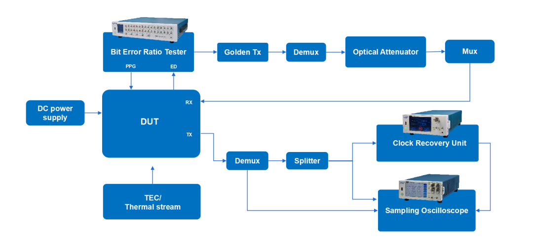基于獨(dú)立的臺(tái)式儀表,包括誤碼儀,示波器,時(shí)鐘恢復(fù)單元等,實(shí)現(xiàn)最大程度的靈活性