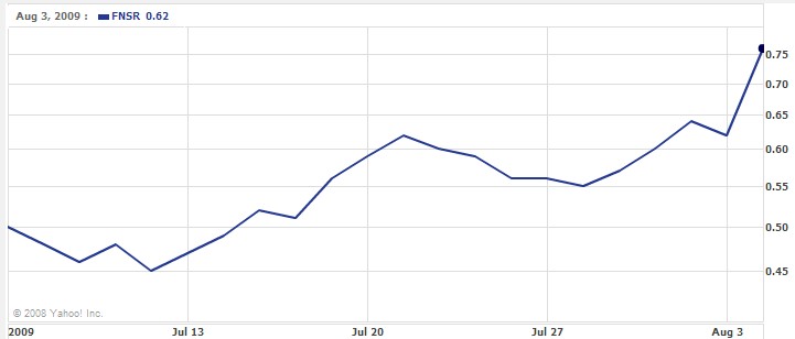 Finisar股價從七月中至今連續(xù)上揚,從0.45美元左右一直漲到0.755美元,漲幅在60%以上。