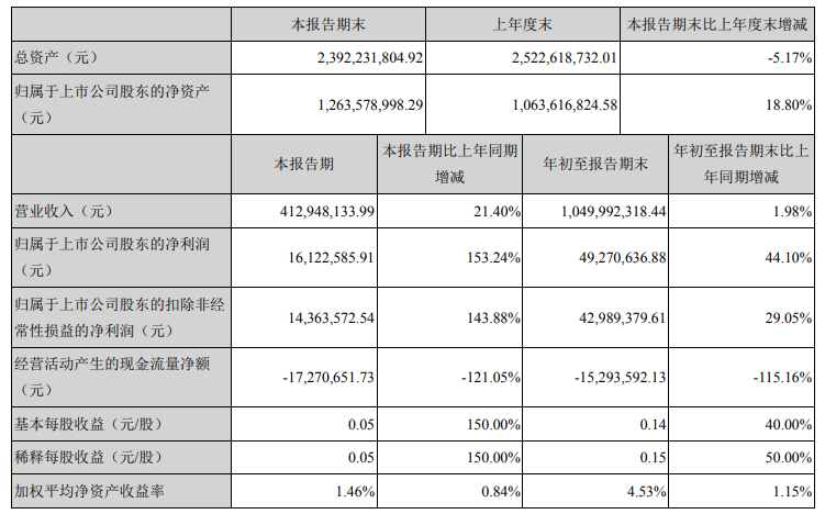2020年前三季度,公司實現營業(yè)收入約10.5億元,比上年同期增長1.98%;實現歸屬于上市公司股東的凈利潤4927.06萬元,同比增長44.1%。
