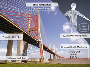 一支西班牙與瑞士聯(lián)合研究團(tuán)隊(duì)設(shè)想將其改良光纖傳感方法應(yīng)用于大規(guī)模的基礎(chǔ)設(shè)施項(xiàng)目和生物醫(yī)學(xué)監(jiān)測(cè)中。(圖片來源:美國(guó)光學(xué)學(xué)會(huì))