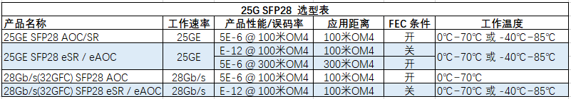 易飛揚(yáng)在多模VCSEL 光模塊和AOC 領(lǐng)域深耕多年,其中數(shù)據(jù)中心AOC 多模產(chǎn)品線業(yè)已從第一代10G/40G SR AOC 過(guò)渡到現(xiàn)今市場(chǎng)主流應(yīng)用的25G/100G SR AOC?;诩?xì)分市場(chǎng)的目的,易飛揚(yáng)定義并開發(fā)了一系列差異化的 AOC 產(chǎn)品,包括超頻低成本AOC lite 版本,標(biāo)準(zhǔn)SR4 AOC 版本,支持25GE 零誤碼的 eSR4 AOC 版本,支持雙速率的eSR4+ AOC 等,可以為客戶提供最佳商用選擇。易飛揚(yáng)同時(shí)也提供25G AOC的多選擇版本。