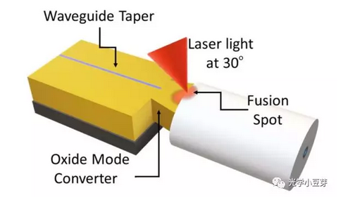 這篇筆記介紹一篇最近的硅光封裝進展。美國羅切斯特大學(xué)研究小組最近報道了一種新型的硅光芯片耦合封裝方案 Optica 6, 549(2019),即使用熔接的方法將光纖與端面耦合器連接,耦合損耗為1dB。文章的鏈接為https://www.osapublishing.org/optica/abstract.cfm?uri=optica-6-5-549 。
