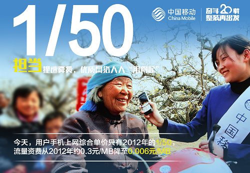 網(wǎng)絡(luò)規(guī)模優(yōu)勢,讓成本下降有空間;精細(xì)化運(yùn)維管理,讓提速降費(fèi)更及時(shí)。2012年以來,中國移動(dòng)持續(xù)加大投資力度,建成了全球最大4G精品網(wǎng)絡(luò),移動(dòng)網(wǎng)絡(luò)峰值速率從400Kbps提升至110Mbps; 打造高品質(zhì)全光網(wǎng)絡(luò),接入帶寬從2Mbps左右提升到全網(wǎng)100Mbps以上,重點(diǎn)區(qū)域達(dá)到1000Mbps。同時(shí),中國移動(dòng)進(jìn)一步取消手機(jī)長途、漫游通話費(fèi)和流量漫游費(fèi)。今天,用戶手機(jī)上網(wǎng)綜合單價(jià)只有2012年的五十分之一,流量資費(fèi)從2012年約0.3元/MB降至0.006元/MB,流量消費(fèi)全面進(jìn)入“G級(jí)”時(shí)代。此外,企業(yè)互聯(lián)網(wǎng)專線、家庭寬帶、國際通信資費(fèi)大幅下調(diào),累計(jì)惠及超10億客戶和400萬家企業(yè)。
