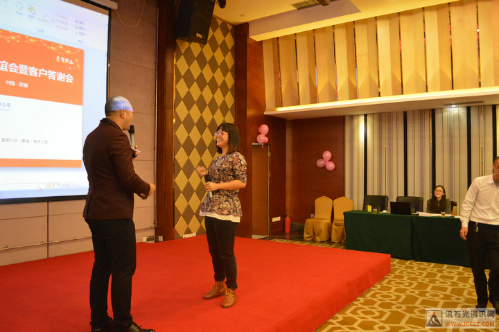ICCSZ訊(編輯summer) 轉眼又是一年春來到,伴著濃濃的新春氣氛,2015年1月29日下午,由訊石精心打造,深圳眾望達光電有限公司協(xié)辦的“訊石2014年度聯(lián)誼會暨客戶答謝會”在深圳國匯大廈四樓福田廳圓滿舉辦。本次聯(lián)誼會得到了深圳杰普特電子技術有限公司、富泰科技(香港)有限公司、深圳齊天創(chuàng)通科技有限公司的禮品贊助支持。