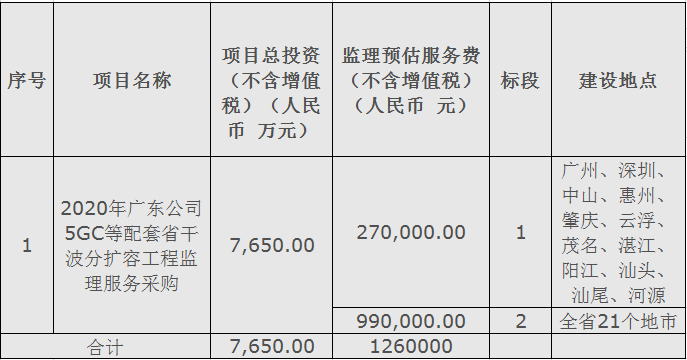 廣東電信5GC等配套省干波分?jǐn)U容工程監(jiān)理服務(wù)集采