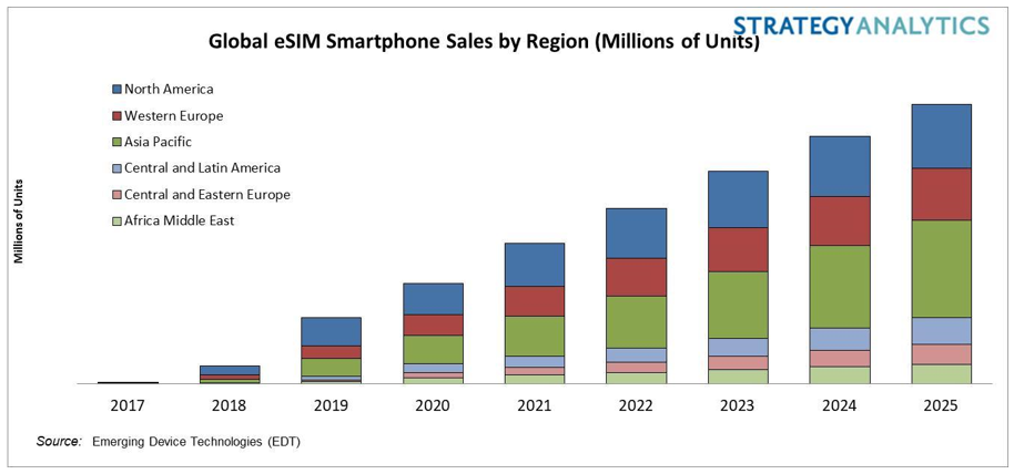 SA:2020年,支持eSIM的智能手機在西歐的出貨量將增長65%