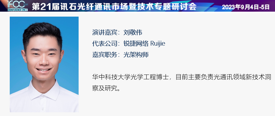 本屆iFOC訊石研討會,光網(wǎng)絡及系統(tǒng)設備提供商銳捷網(wǎng)絡股份有限公司光架構(gòu)師劉敬偉博士將發(fā)表報告《面向CPO/NPO系統(tǒng)的可插拔光源模塊探討》,隨著算力和數(shù)據(jù)需求的爆發(fā)式增長,傳統(tǒng)可插拔光模塊技術(shù)的演進難以支撐高算力背景下的可持續(xù)發(fā)展,因此需要更為先進的CPO技術(shù)。在當前CPO技術(shù)部署中,為了提升可靠性,OIF組織定義了外置可插拔光源模塊(ELSFP)。本次報告在當前直通ELSFP標準上,提出了一種新型的直通ELSFP模塊,該模塊可以集成MUX/DeMUX,解決了當前CPO光引擎不能重新配置DR/FR光源模塊的難題,增強了CPO系統(tǒng)的靈活性。