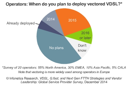 ICCSZ訊(編譯:Nina)Infonetics調(diào)查顯示,計(jì)劃為住宅用戶提供1G帶寬速度的服務(wù)供應(yīng)商將從2015年的15%上升至2017年的40%。受訪者的用戶中66%使用銅線接入技術(shù),35%使用光纖接入技術(shù),今年光進(jìn)銅退將更進(jìn)一步。考慮到部署的成本,一半受訪者還沒有計(jì)劃部署或不確定是否會部署FTTdp或G.fast技術(shù)。受訪的運(yùn)營商認(rèn)為阿爾卡特朗訊是領(lǐng)先的DSL設(shè)備制造商,同時阿爾卡特朗訊和Calix(并列)是領(lǐng)先的FTTH設(shè)備制造商。