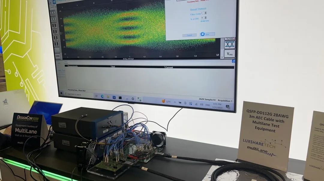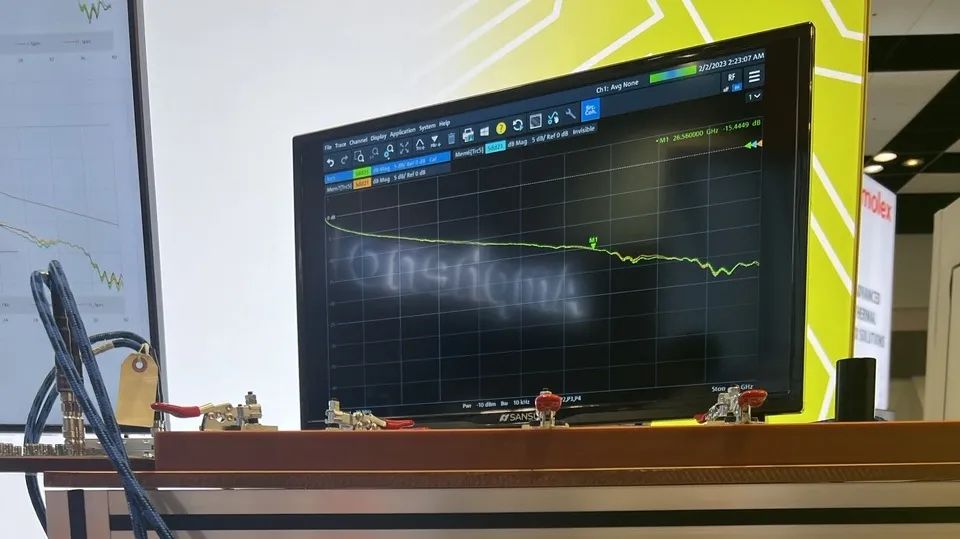 在展會現(xiàn)場,立訊技術(Luxshare-Tech)利用224G測試治具完整演示了頻寬高達70Ghz時,產品平滑的性能衰減;并真實模擬了數(shù)據(jù)中心安裝過程中,112G Optamax S裸線多次彎折扭轉后的優(yōu)異高頻性能。