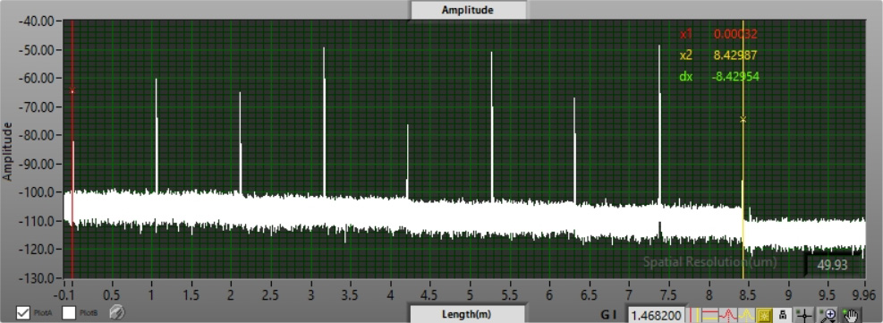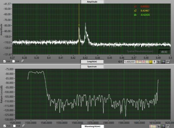 通過(guò)使用OFDR技術(shù)測(cè)出高反射位置的光譜信息來(lái)判斷其對(duì)應(yīng)哪個(gè)波分復(fù)用器通道,可以實(shí)現(xiàn)高精度地測(cè)量各個(gè)通道的長(zhǎng)度。
