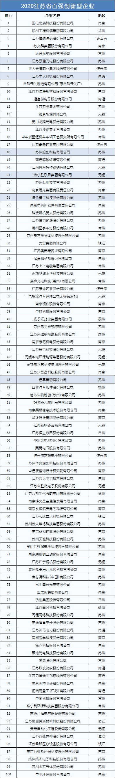 ICC訊 近日,江蘇省科技發(fā)展戰(zhàn)略研究院發(fā)布了“2020江蘇省百強創(chuàng)新型企業(yè)”名單。榜單從創(chuàng)新投入、創(chuàng)新產(chǎn)出、創(chuàng)新績效、創(chuàng)新管理等四個方面對江蘇省各大企業(yè)進行綜合評價。