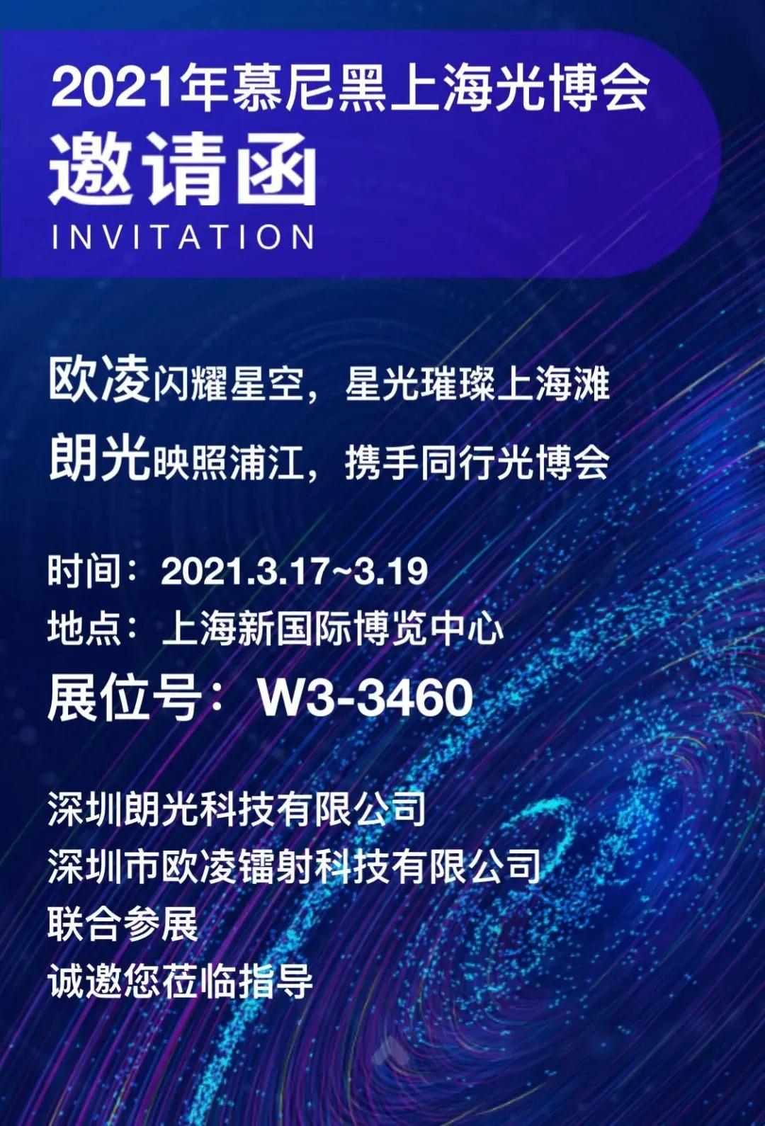 ICC訊 3月17-19日,2021年慕尼黑上海光博會(huì)將在上海新國際博覽中心盛大舉辦,深圳朗光科技有限公司與深圳市歐凌鐳射科技有限公司聯(lián)合參展,展會(huì)位W3-3460,歡迎蒞臨交流。