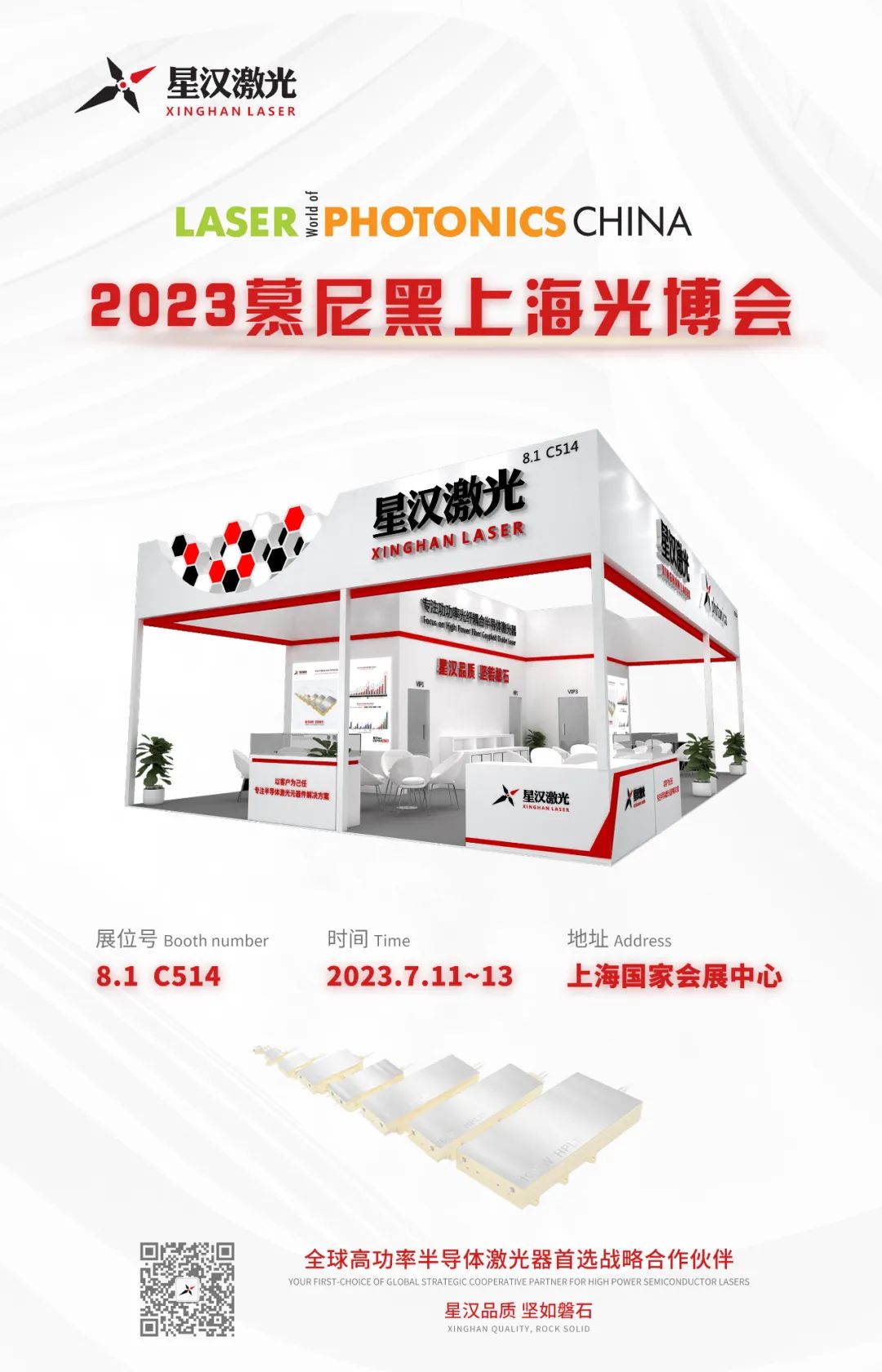ICC訊 7月11日-7月13日,深圳市星漢激光科技股份有限公司(以下簡稱:星漢激光)攜半導(dǎo)體激光器產(chǎn)品系列產(chǎn)品亮相2023慕尼黑上海電子展,展位號:8.1 C514,誠邀行業(yè)客戶前往展臺觀展交流。
