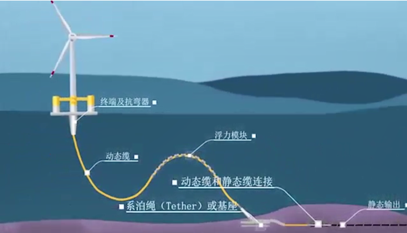 漂浮式風電是深遠海風能資源開發(fā)的重要途徑。動態(tài)海纜系統(tǒng)作為漂浮式風電輸電的關(guān)鍵裝備,主要用于連接風機之間及風機與集電外輸?shù)撵o態(tài)海纜。目前,國內(nèi)動態(tài)海纜系統(tǒng)的研制還處于起步階段,該計劃專項已成功研制35kV與66kV動態(tài)海纜系統(tǒng),并已成功安裝應(yīng)用于國內(nèi)首臺深遠海漂浮式風電機組“扶搖號”。