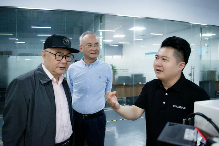 在恩納基智能科技無錫有限公司,貢培興主席一行先后參觀了公司展廳,實地考察了恩納基的智造中心和管理中心,并聽取了恩納基總經理吳超有關產品研發(fā)設計、產品生產銷售以及未來發(fā)展前景等介紹。