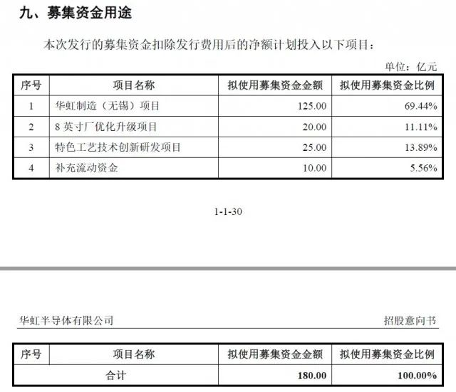 華虹半導(dǎo)體本次募投項(xiàng)目預(yù)計(jì)使用募集資金180億元,計(jì)劃投入華虹制造(無(wú)錫)項(xiàng)目、8英寸廠優(yōu)化升級(jí)項(xiàng)目、特色工藝技術(shù)創(chuàng)新研發(fā)項(xiàng)目以及補(bǔ)充流動(dòng)資金,其中,華虹制造(無(wú)錫)項(xiàng)目是華虹半導(dǎo)體此次募投的重點(diǎn)。