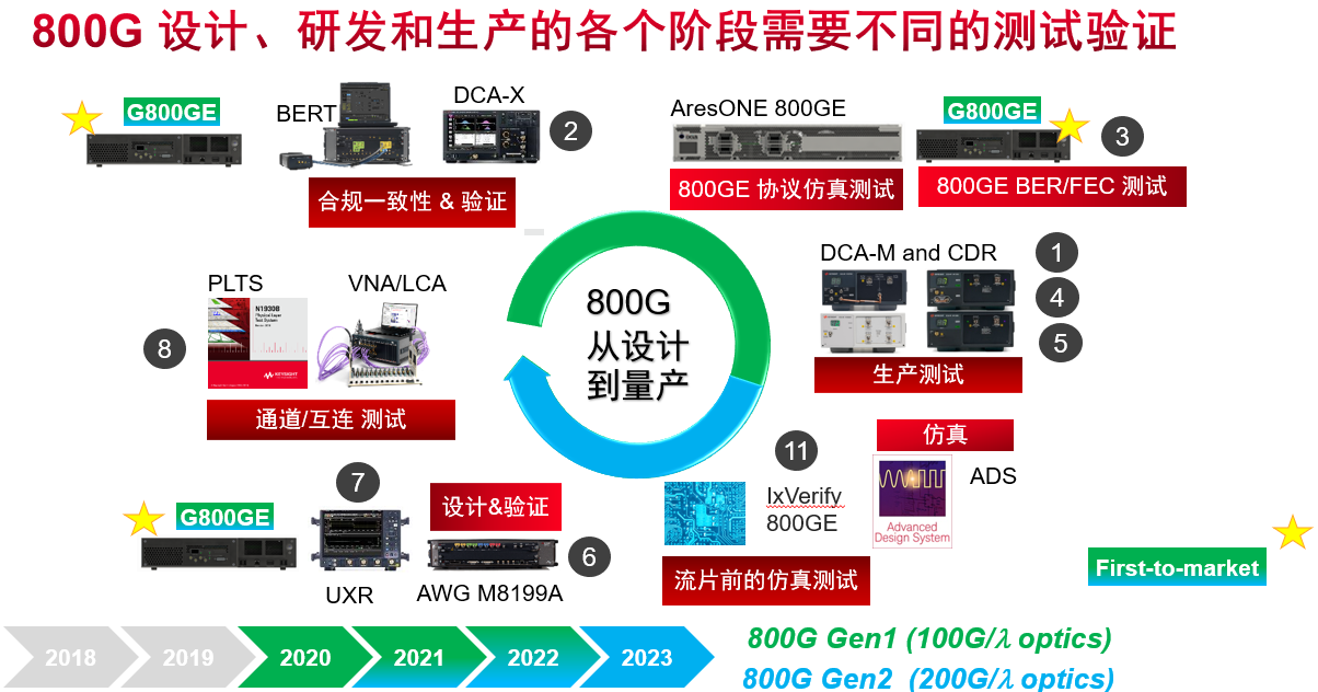 是德科技在今年第三季度的財(cái)報(bào)中提到,目前公司其業(yè)務(wù)成長(zhǎng)主要來(lái)自5G技術(shù)的應(yīng)用、新的5G芯片和器件,數(shù)據(jù)中心的400G和800G以太網(wǎng),以及6G早期研發(fā)、半導(dǎo)體、汽車電子等。從光通信角度看,數(shù)據(jù)中心仍然是最有潛力的市場(chǎng),是德科技提供從仿真、硬件研發(fā)、算法研究、生產(chǎn)測(cè)試、流量測(cè)試、FEC測(cè)試等。下圖是一個(gè)800G仿真、研發(fā)和生產(chǎn)的測(cè)試方案總結(jié)。另外,是德科技的布局是從三重研發(fā)架構(gòu)出發(fā),從底層技術(shù)、到芯片、到產(chǎn)品和方案,以高質(zhì)量的底層硬件為積木,根據(jù)市場(chǎng)和客戶需求研發(fā)出對(duì)應(yīng)的方案。