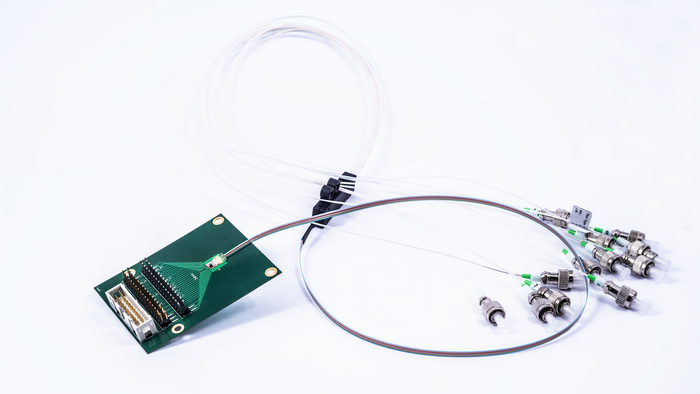 Imec和根特大學(xué)還展示了一款106Gb/s光發(fā)射機(jī),其采用PAM4調(diào)制格式,這種四級(jí)調(diào)制格式在近年來(lái)被行業(yè)廣泛采用,用作超500米距離場(chǎng)景的53GBd單通道傳輸?shù)恼{(diào)制格式。相比于其他PAM4光發(fā)射機(jī),IMEC解決方案不需要使用任何同等方式或數(shù)字信號(hào)處理,其集成兩個(gè)并行的GeSi電吸收調(diào)制器,研發(fā)結(jié)果便是一個(gè)最緊湊、低功率(1.5pJ/b)光發(fā)射機(jī),可以在超過(guò)1公里單模塊光纖上實(shí)現(xiàn)106Gb/s的傳輸數(shù)據(jù)。