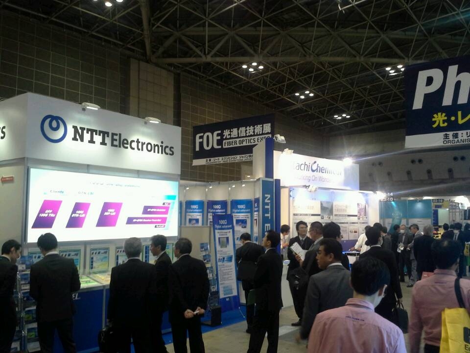今年FOE在Tokyo 的Bigsite convention center 舉行。據(jù)現(xiàn)場參展的同星光電何總介紹,本次展會參展商來自中國大陸比起OFC少了很多,相對而言臺灣廠商到場的很多。日本各光通信產(chǎn)業(yè)有關(guān)的本土大公司都是以高格調(diào)亮相。比如NTT、NEC、 Sumitomo、 Fujikura、Mitsubishi、Hitach 等都有展示具有引導(dǎo)行業(yè)的技術(shù)實(shí)力的展臺,并且很多公司都有LiveShow。