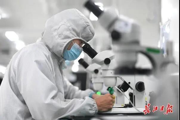 10月8日華工科技核心子公司華工正源生產車間COB封裝產線一派繁忙景象