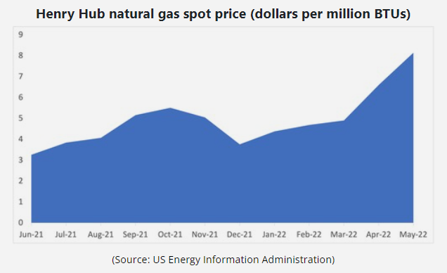 不幸的是,現(xiàn)在的情況比一年前更糟。自2月俄烏戰(zhàn)爭爆發(fā)以來,歐洲國家一直在尋找俄羅斯的天然氣替代品。俄羅斯是全球第二大天然氣生產(chǎn)國,僅次于美國。將俄羅斯天然氣輸往德國的Nord Stream 2項(xiàng)目目前處于擱置狀態(tài),很可能會(huì)夭折。俄羅斯總統(tǒng)普京一直表示要切斷向?yàn)蹩颂m提供武器的國家的供應(yīng)。當(dāng)白宮發(fā)布報(bào)告時(shí),天然氣的現(xiàn)貨價(jià)格是每百萬英熱單位(BTU)3.26美元。上個(gè)月,它達(dá)到了8.14美元。