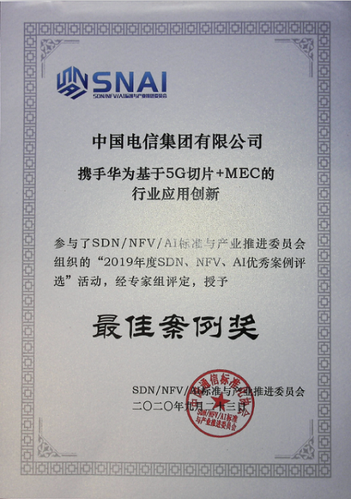 ICC訊 近日,在2020中國(guó)SDN/NFV/AI大會(huì)期間,華為和中國(guó)電信聯(lián)合申報(bào)的“基于5G切片和MEC技術(shù)的創(chuàng)新行業(yè)應(yīng)用”榮獲SDN/NFV/AI標(biāo)準(zhǔn)與產(chǎn)業(yè)推進(jìn)委員會(huì)頒發(fā)的年度“最佳案例”獎(jiǎng)。