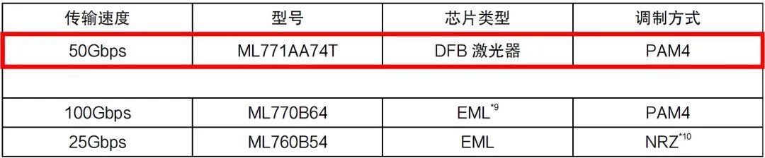 粗線框中是本次的新產(chǎn)品(50Gbps DFB激光器)。
