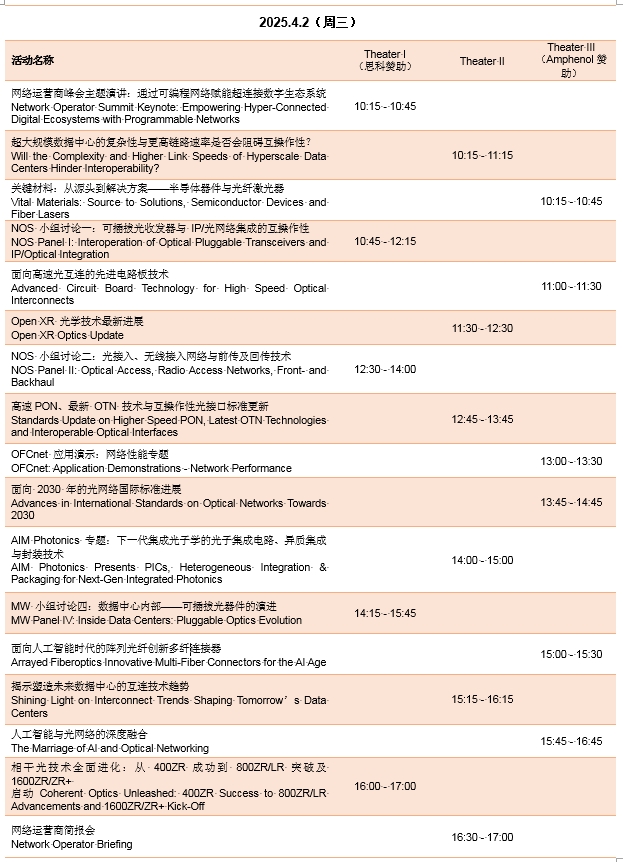 附:OFC2025展區(qū)活動(dòng)日程表