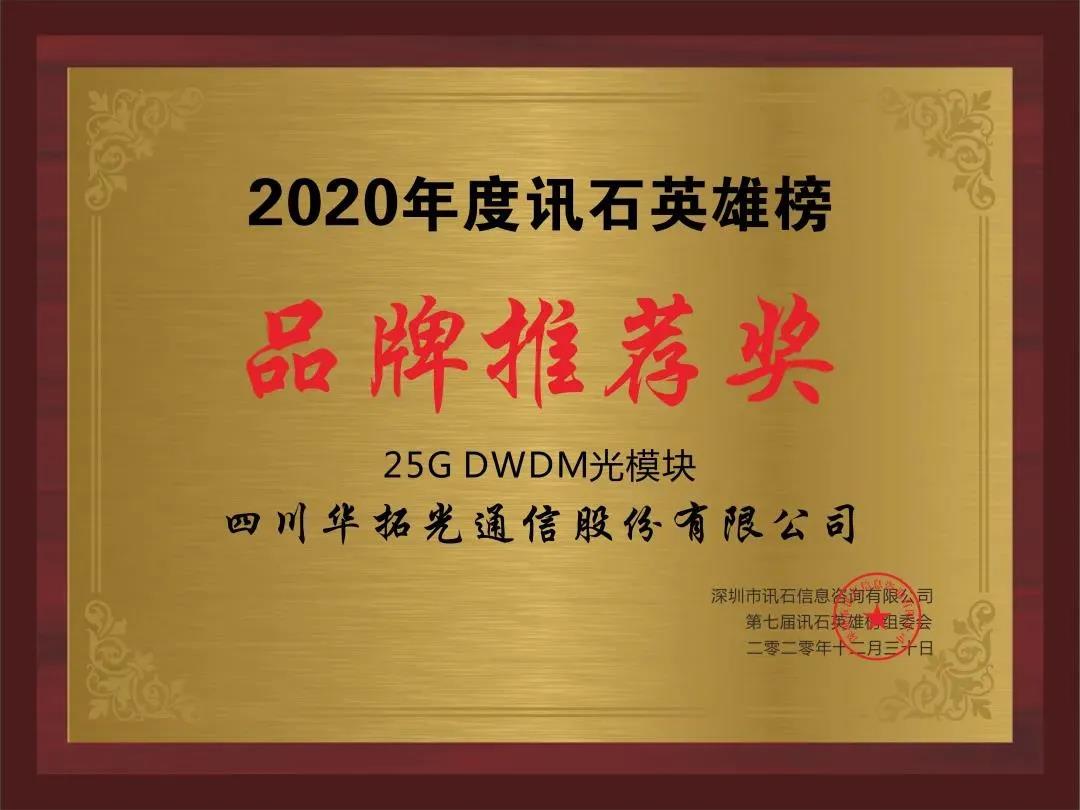 ICC訊 2021年1月21日,訊石2020年度總結(jié)暨第七屆英雄榜頒獎(jiǎng)儀式以線上直播的方式舉行。訊石英雄榜是由30余位光通信領(lǐng)域?qū)<液陀嵤稍?xún)組成評(píng)審組,從參選產(chǎn)品的技術(shù)、成本、市場(chǎng)占有率、客戶滿意度和第三方權(quán)威驗(yàn)證等方面進(jìn)行評(píng)定。特發(fā)信息參評(píng)的四端口波分復(fù)用器件(4-port Hybrid WDM)榮獲 “優(yōu)秀品質(zhì)獎(jiǎng)”,特發(fā)信息控股企業(yè)四川華拓參評(píng)的25G DWDM光模塊榮獲“品牌推薦獎(jiǎng)”。