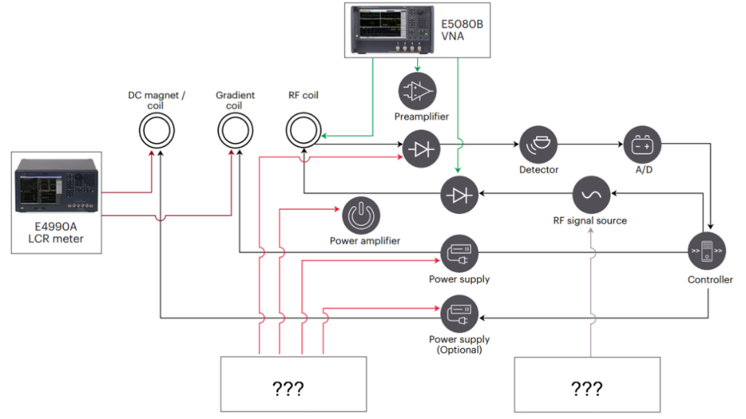下圖是核磁共振設(shè)備組件測試與儀器的對應(yīng)圖片,你知道下面被隱去的兩臺儀器是什么嗎?