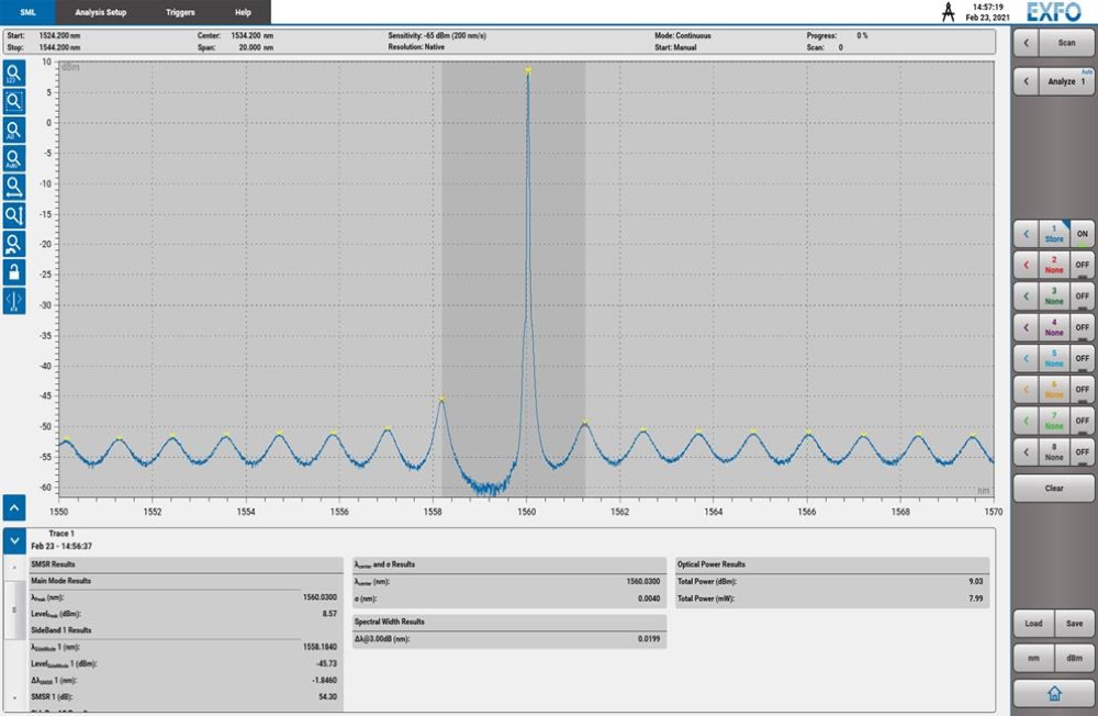 先進(jìn)的 OSA,如 OSA20 具有測試速度快的優(yōu)點(diǎn),能夠以2000 nm/s的速度,每秒完成五次掃描,這足以進(jìn)行實(shí)時(shí)的器件校準(zhǔn),且分辨率非常高,可以測量關(guān)鍵的參數(shù),如 OSNR 和 SMSR。