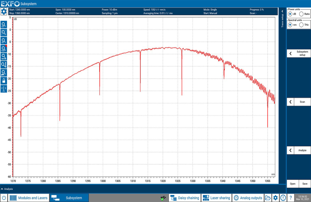 CTP10 是一個(gè)模塊化的器件測試平臺(tái),可在掃描時(shí)以皮米級(jí)分辨率和70 dB的動(dòng)態(tài)范圍鑒定高端口數(shù)設(shè)備的光譜特性,速度可達(dá)100 nm/s。CTP10 的工作波長范圍從1240到1680 nm,涵蓋包括電信、傳感和激光雷達(dá)在內(nèi)的一系列應(yīng)用。它采用電子設(shè)備和內(nèi)部處理器,使數(shù)據(jù)傳輸變得輕而易舉。可以使用 SCPI 命令遠(yuǎn)程控制 CTP10,在進(jìn)行自動(dòng)化 PIC 測試設(shè)置的過程中,讓集成變得更加簡單方便,從而提高 PIC 測試的效率并縮短測試時(shí)間。