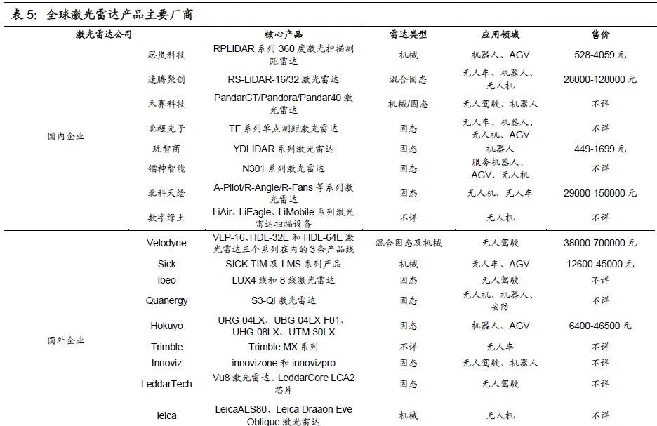 主要玩家:激光雷達目前國外巨頭主要是 Velodyne、Ibeo 和 Quanergy 三家。國內除華為外,還有禾賽科技、速騰科技、鐳神、一徑科技、思嵐科技等。著名無人機企業(yè)大疆內部孵化的 Livox 于 2020 年發(fā)布了兩款激光雷達產(chǎn)品,售價分別為 6499 元和 9000元,線數(shù)分別等效于傳統(tǒng) 64 線和 128 線。