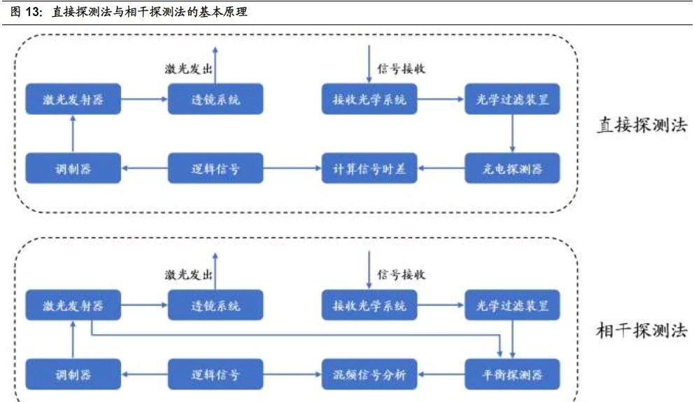 探測技術:目前有兩種主流的探測技術,即直接探測法與相干探測法。