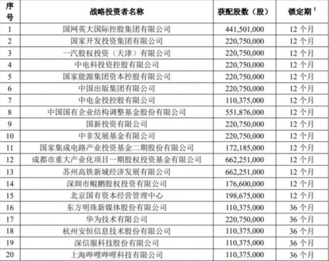 ICC訊 8月10日,中國電信披露戰(zhàn)略配售結(jié)果,共20家戰(zhàn)略投資者,配售數(shù)量為51.83萬股,約占綠鞋全額行使后本次發(fā)行總量的43.35%。20家戰(zhàn)略投資者包括:國家集成電路產(chǎn)業(yè)投資基金二期、中國國有企業(yè)結(jié)構(gòu)調(diào)整基金、華為技術(shù)有限公司、上海嗶哩嗶哩科技有限公司、安恒信息、東方明珠、深信服等。