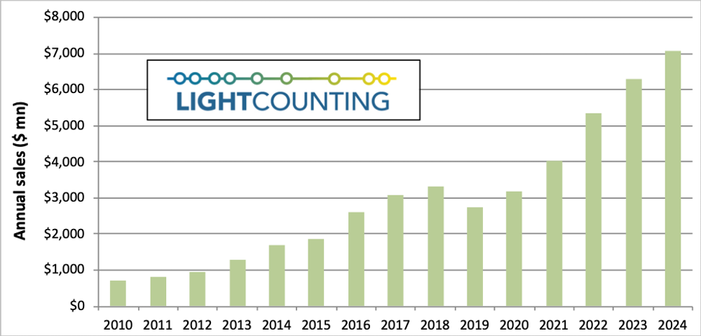 但無論如何,LightCounting把當(dāng)前下滑視為暫時(shí)性現(xiàn)象,其預(yù)測(cè)2019-2024時(shí)間框內(nèi)的市場(chǎng)銷售CAGR將達(dá)22%,下一代產(chǎn)品如200G/400G光收發(fā)器的銷售和100GbE光器件穩(wěn)定需求(盡管處于低價(jià))將推動(dòng)這輪增長(zhǎng)。