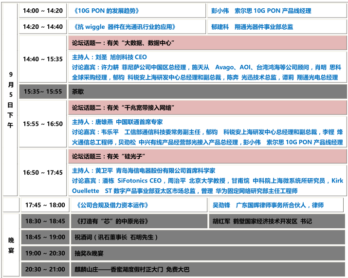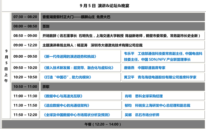 三大論壇話題緊跟行業(yè)熱點(diǎn),并邀請(qǐng)到行業(yè)眾多知名專家學(xué)者與名企高管壓陣,信息量十足,含金量極高。話題一有關(guān)“大數(shù)據(jù)、數(shù)據(jù)中心”,由旭創(chuàng)科技CEO劉圣主持;話題二有關(guān)“千兆寬帶接入網(wǎng)絡(luò)”,由中國聯(lián)通首席專家唐雄燕主持;話題三與時(shí)下最熱門的“硅光子”相關(guān),由青島海信電器股份有限公司首席科學(xué)家黃衛(wèi)平主持。各個(gè)論壇話題的討論嘉賓也是來頭不小,并且身在現(xiàn)場的您若有疑問可隨時(shí)提出并與大咖共同討論,相信熱烈的氛圍、精彩的發(fā)言一定能讓各位參會(huì)人員融入其中,回味無窮!