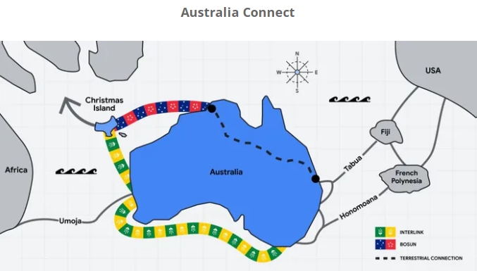 他補充說,澳大利亞連接將補充太平洋連接光纜網(wǎng)絡,該網(wǎng)絡于2023年10月宣布,通過斐濟和法屬波利尼西亞之間的多太比特環(huán)形網(wǎng)絡連接澳大利亞和美國西海岸。