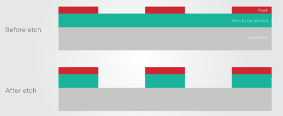 3. 蝕刻:在光阻上 "打印 "出圖案后,就需要去除(或蝕刻)部分半導(dǎo)體材料,以便將圖案從光阻上轉(zhuǎn)移到晶圓片上。有幾種技術(shù)可以用來(lái)蝕刻材料。