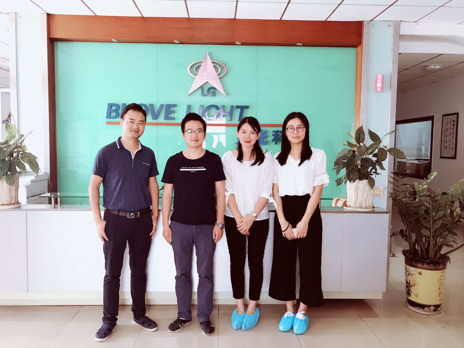 藍(lán)光科技光通訊事業(yè)部郭經(jīng)理(左一)吳經(jīng)理(左二)與訊石