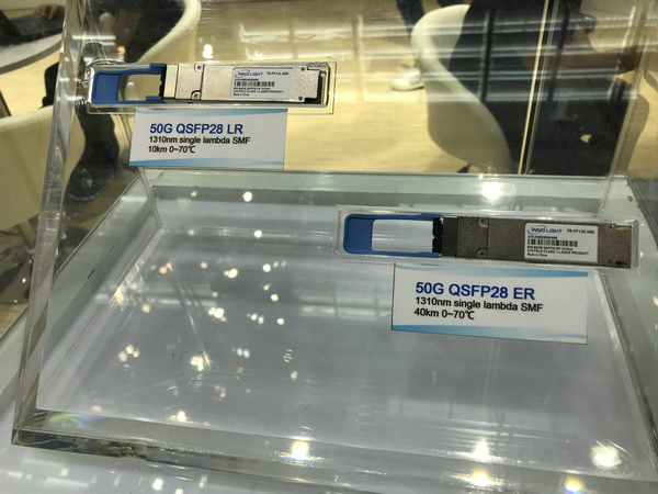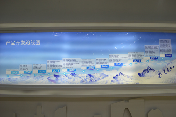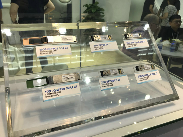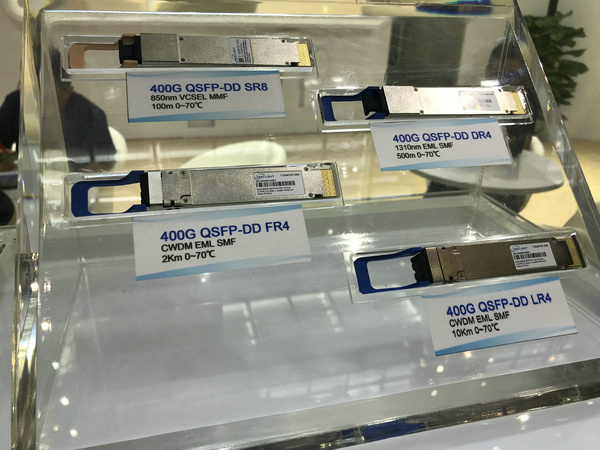 眾所周知,100G技術(shù)產(chǎn)品已經(jīng)成熟,400G是當(dāng)前討論熱點(diǎn)。業(yè)界十分關(guān)注旭創(chuàng)科技400G產(chǎn)品進(jìn)展。劉博士表示公司光模塊出貨達(dá)到了幾百萬只,而400G產(chǎn)品研發(fā)和量產(chǎn)進(jìn)度也令人滿意,目前400G整體進(jìn)展處于全球第一梯隊(duì)。據(jù)訊石對旭創(chuàng)現(xiàn)場工作人員的詢問,旭創(chuàng)400G光模塊不僅是推出Demo,而是達(dá)到了可以為客戶使用的階段,公司部分400G產(chǎn)品會在2019年實(shí)現(xiàn)量產(chǎn)。
