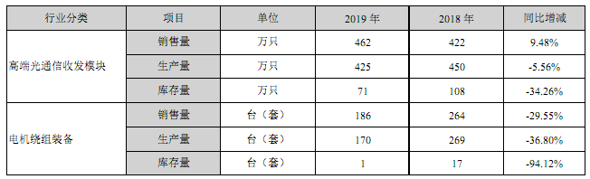產(chǎn)銷(xiāo)方面,高端光通信收發(fā)模塊銷(xiāo)售量為462萬(wàn)只,同比增長(zhǎng)9.48%;生產(chǎn)量為425萬(wàn)只,同比下降5.56%;庫(kù)存量為71萬(wàn)只,同比下降34.26%。報(bào)告期內(nèi),光模塊業(yè)務(wù)主體,中際旭創(chuàng)全資子公司蘇州旭創(chuàng)的高端光通信收發(fā)模塊業(yè)務(wù)銷(xiāo)售量同比增加,導(dǎo)致庫(kù)存商品數(shù)量減少。