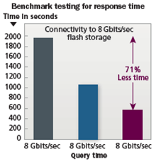 相比傳統(tǒng)的硬盤(pán)驅(qū)動(dòng)器(HDD), 全閃存陣列(AFAs)具有高數(shù)據(jù)密度、高耐用性、較低的能源消耗和節(jié)省機(jī)架空間,顯著提高了存儲(chǔ)性能。依據(jù)Brocade演示,其使用32G光纖通道接入8G的閃存,比使用8G光纖通道的響應(yīng)時(shí)間減少71%。