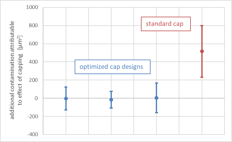 在此過程中,我們嘗試了多種標準的和經(jīng)過優(yōu)化的防塵帽設計方案,并測量了每種設計方案在加蓋/開蓋后對端面污染的影響。最終,我們發(fā)現(xiàn)經(jīng)過優(yōu)化后的防塵帽可以很好地降低光纖污染的可能。
